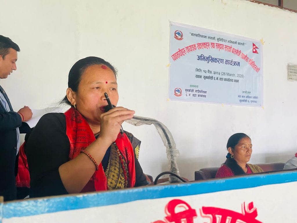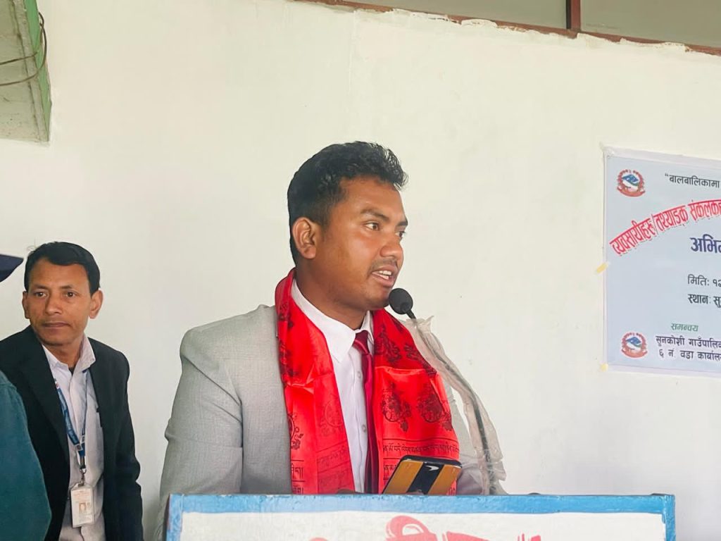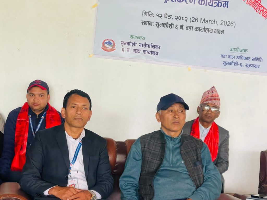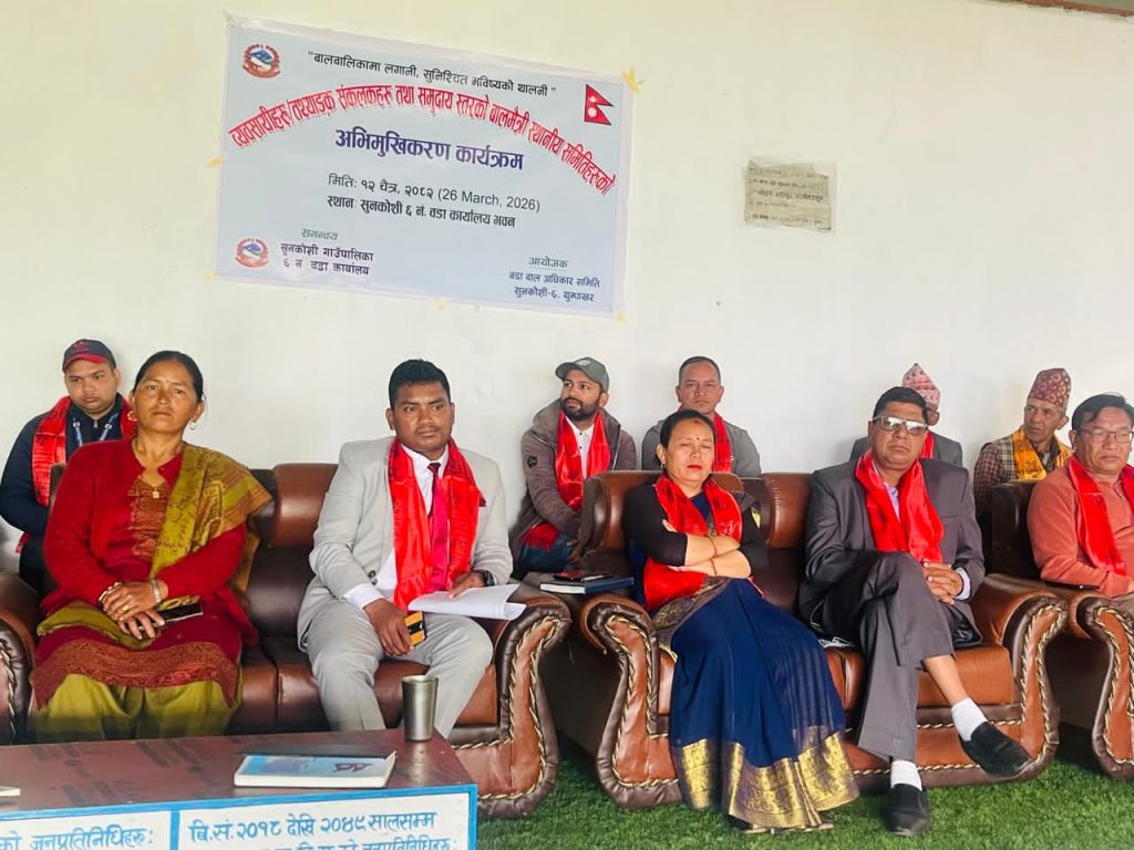 सुनकोशी गाउँपालिका–६ मा बालमैत्री समाज निर्माणतर्फ महत्वपूर्ण पहल गरिएको छ। सुनकोशी गाउँपालिका वडा नम्बर ६ थुम्पाखरस्थित वडा बाल अधिकार समितिको आयोजनामा “बालबालिकामा लगानी सुनिश्चित भविष्यको थालनी” भन्ने मूल नाराका साथ व्यवसायी तथ्याङ्क संकलन तथा सामुदायिक स्तरको बालमैत्री स्थानीय शासन सम्बन्धी अभिमुखीकरण कार्यक्रम सम्पन्न भएको हो।