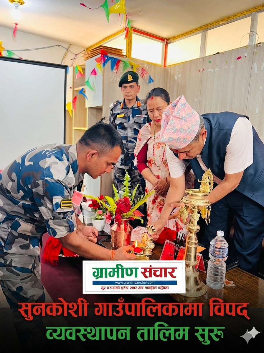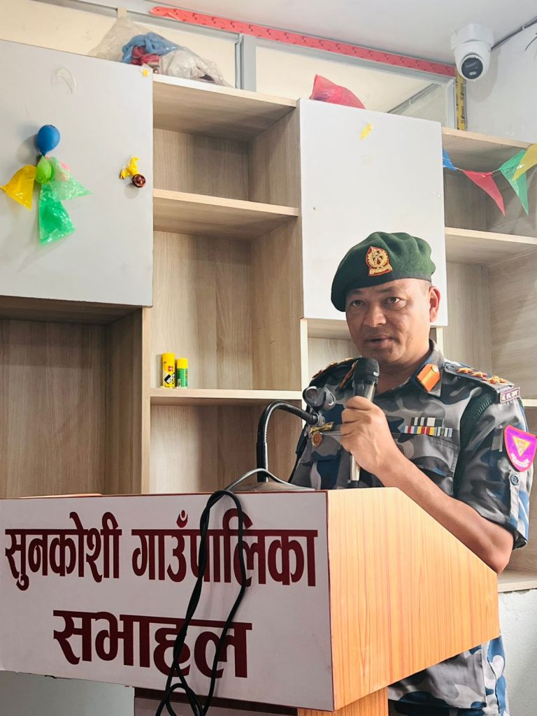 सिन्धुपाल्चोक जिल्लाको सुनकोशी गाउँपालिका र सशस्त्र प्रहरी बल नेपाल नम्बर १६ गण हेडक्वार्टरको संयुक्त आयोजनामा समुदायस्तरमा विपद् जोखिम न्यूनीकरण तथा व्यवस्थापन क्षमताको अभिवृद्धि गर्ने उद्देश्यले सञ्चालन गरिएको समुदाय विपद् स्वयंसेवक तालिम आजबाट औपचारिक रूपमा सुरु भएको छ। स्थानीय तहमा सम्भावित प्राकृतिक तथा मानवसिर्जित विपद्का घटनाहरूको प्रभावकारी रूपमा सामना गर्न सक्षम जनशक्ति तयार पार्ने लक्ष्यसहित उक्त तालिम सञ्चालनमा ल्याइएको हो।